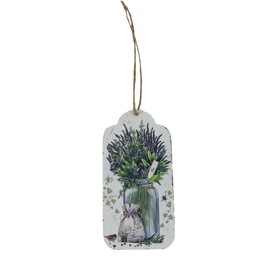 Dekoračná plechová ceduľka na zavesenie s motívom levandule.