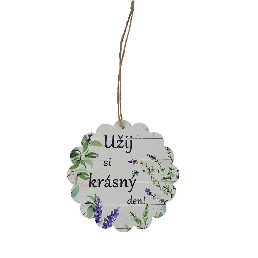 Dekoračná plechová ceduľka na zavesenie s motívom levandule.
