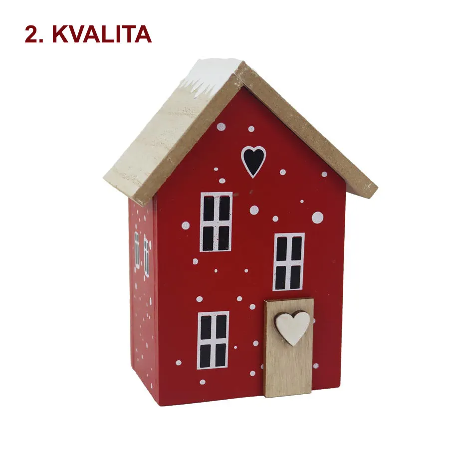 Domček je v 2. akosti, miestami polepené, odštiepené, z kriva nalepené dvere, poškriabané.
