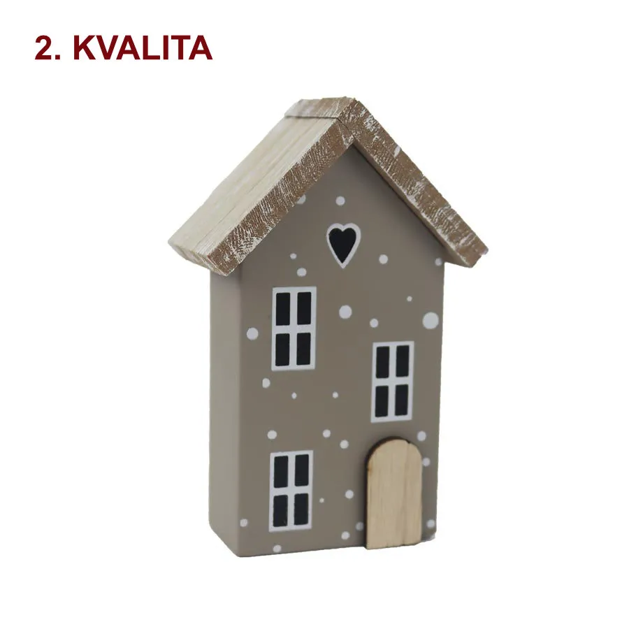 Domček je v 2. akosti, miestami polepené, fľakaté, z kriva nalepené dvere, poškriabané.