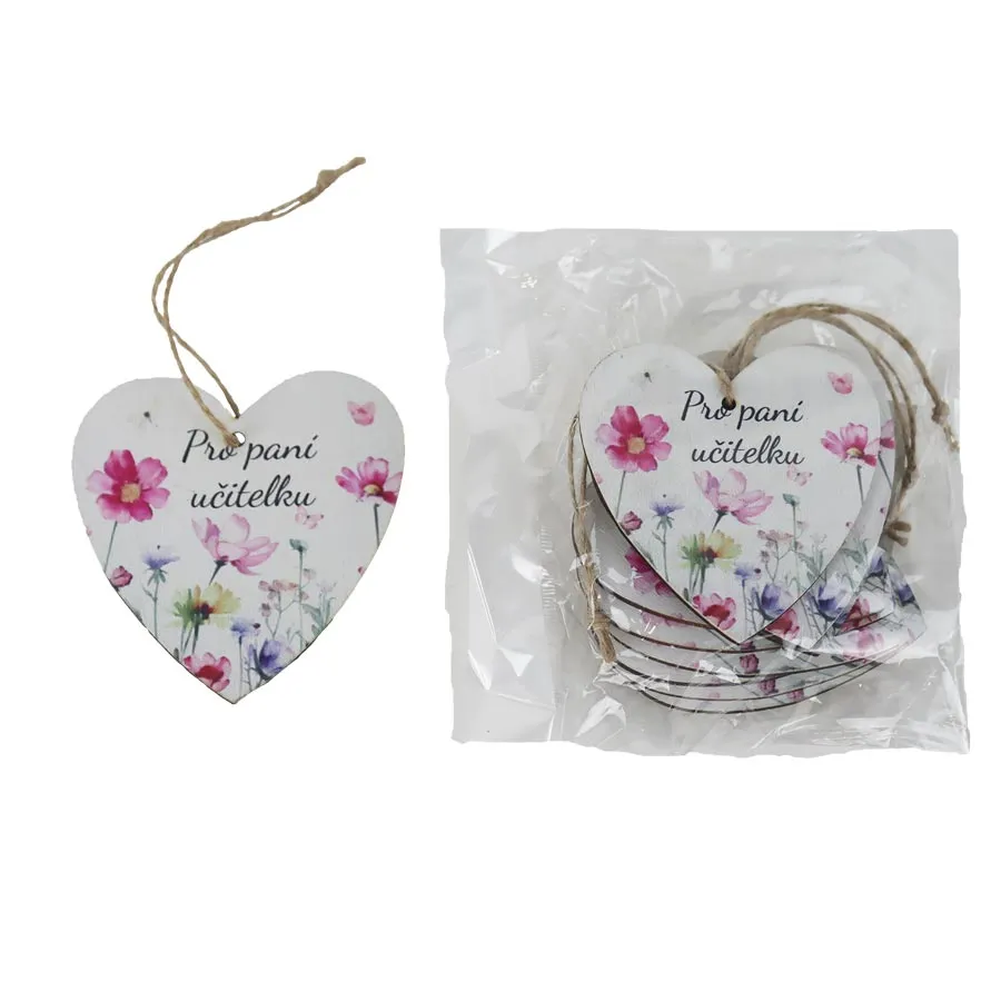 Dekoračné srdce na zavesenie s nápisom Pro paní učitelku, 10 ks D7879
