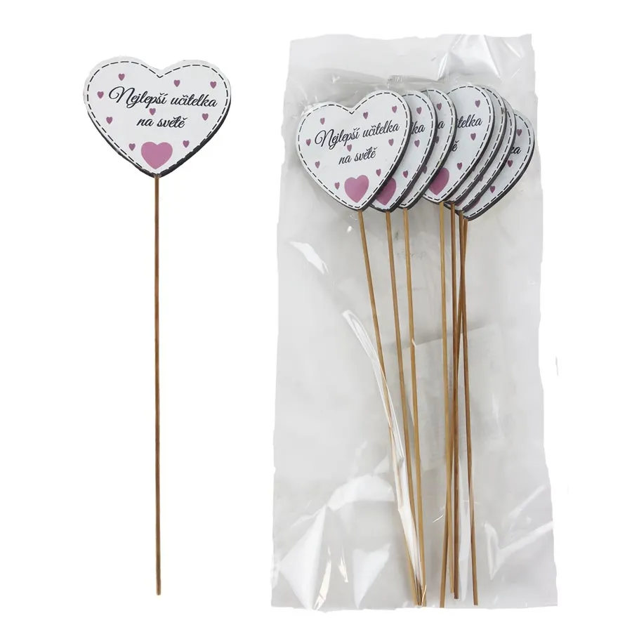 Dekoračný zápich srdce s nápisom Pro paní učitelku, 8 ks D7880
