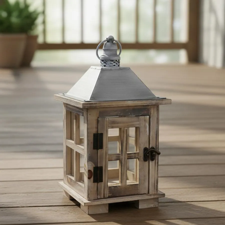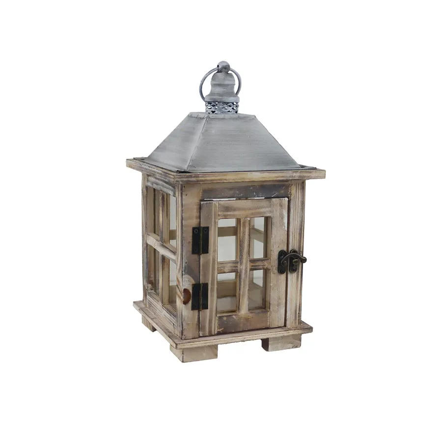 Drevený lampáš. Vneste do svojho domova či záhrady kúzlo orientálneho štýlu. Táto lampáš je vyrobená z dreva a sklenených panelov, horná časť je z kovu. Lampáš má praktickú rukoväť, ktorá vám uľahčí jej prenášanie medzi domom a záhradou.