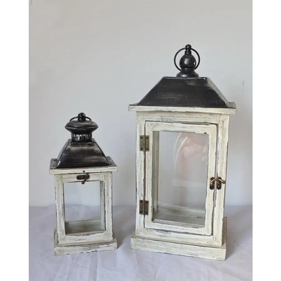 Sada drevených lampášov. Sada obsahuje 2 lucerny o dvoch veľkostiach. Malý lampáš má rozmery: 14 x 10 cm, výšku 30 cm. Veľká lampáš má rozmery: 21,5 x 18 cm, výšku 45 cm. Vneste do svojho domova či záhrady kúzlo orientálneho štýlu. Tieto lucerny sú vyrobené z dreva a sklenených panelov, horná časť je z kovu. Lampióny majú praktickú rukoväť, ktorá vám uľahčí ich prenášanie medzi domom a záhradou.