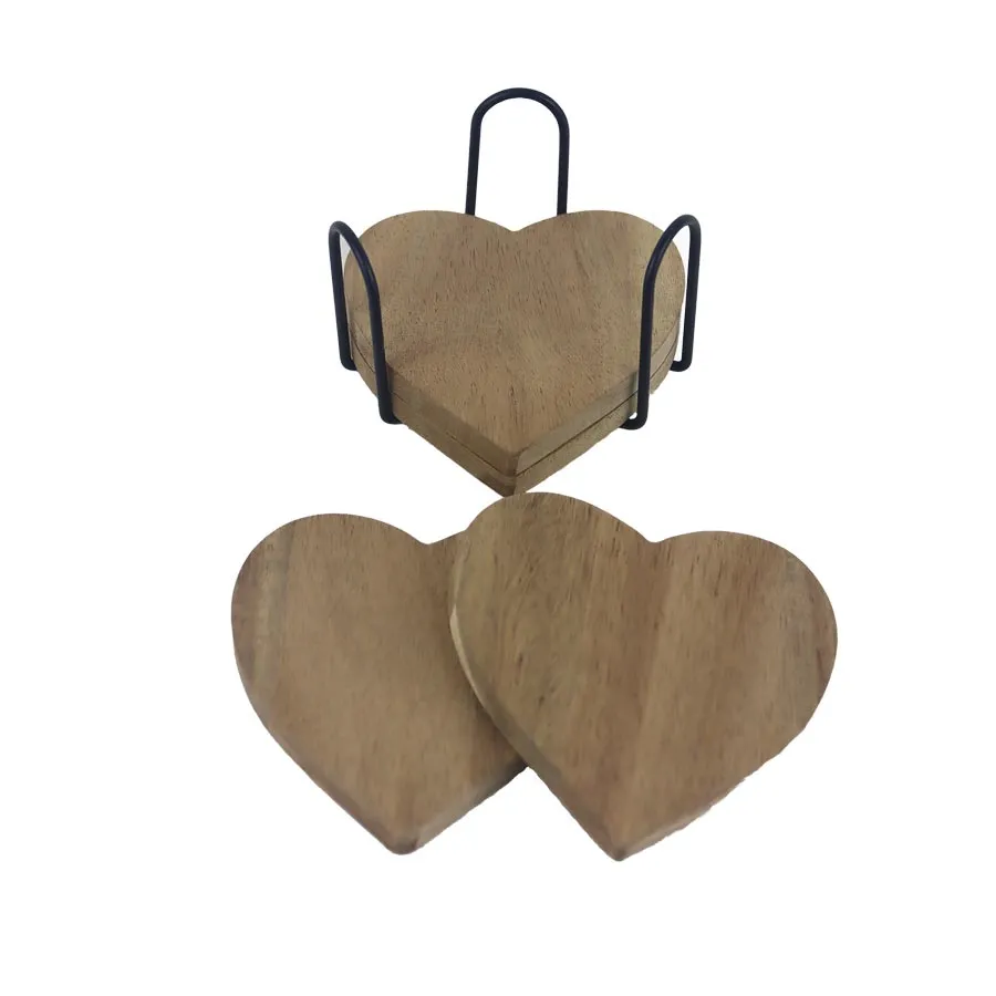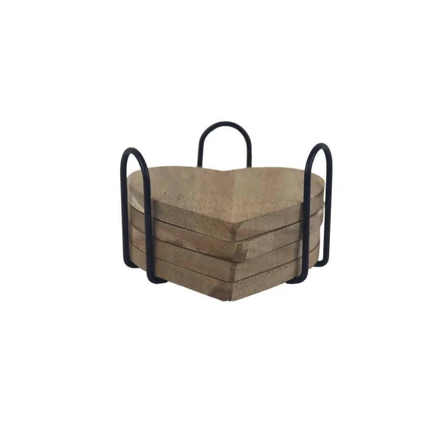 Súprava drevených podtáckov. Súprava obsahuje 4 podtácky, kovový stojan.