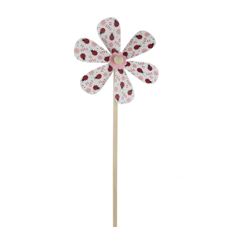 Dekoračný drevený veterník s lienkami.