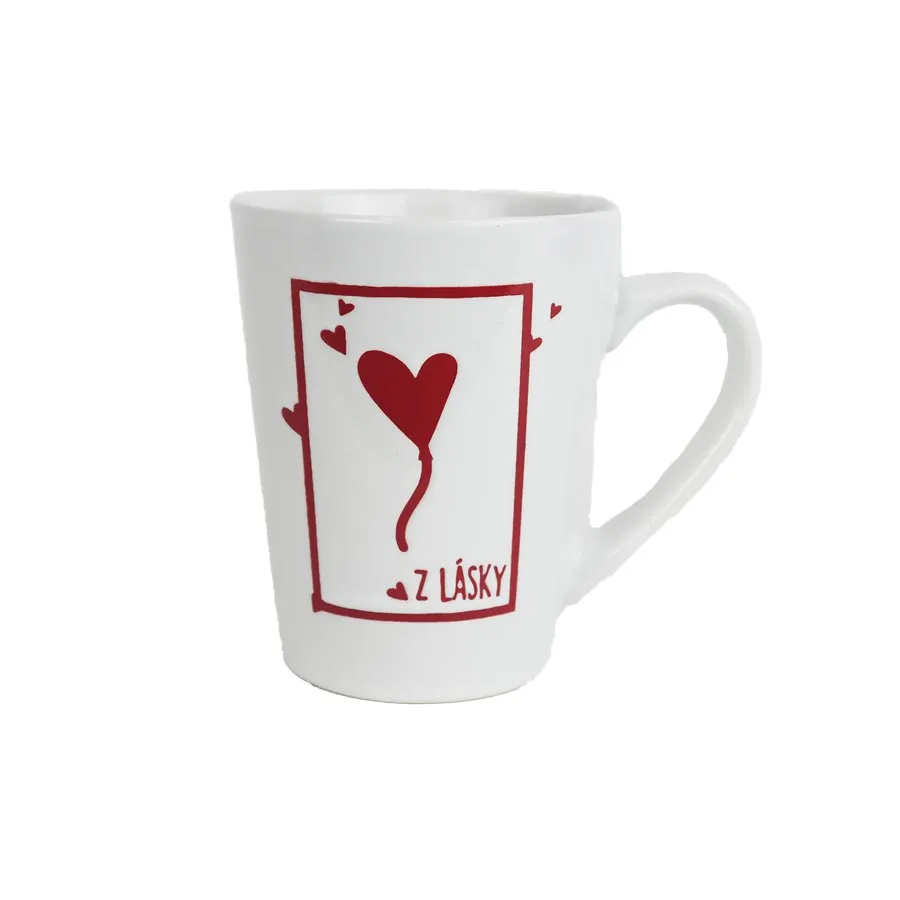 Hrnček srdce s nápisom Z lásky. Hrnček má objem 350 ml.
