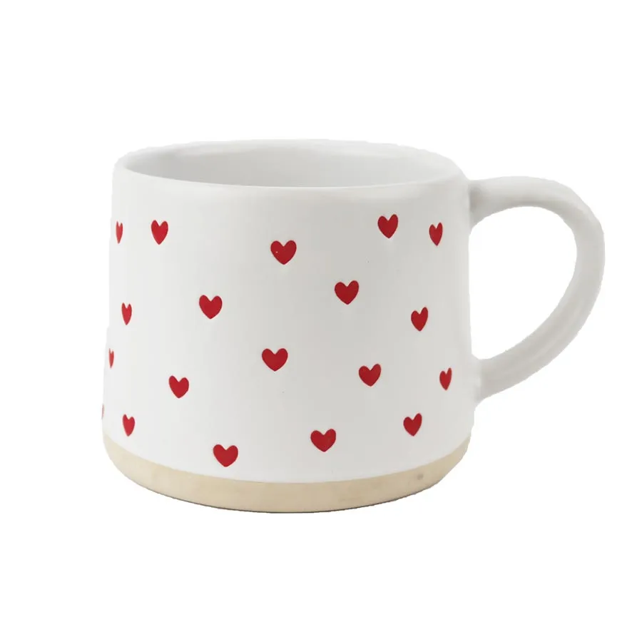 Keramický hrnček so srdiečkami. Hrnček má objem 360 ml.