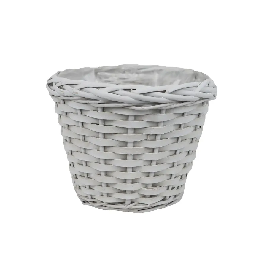 Prútený obal na kvety s plastom.