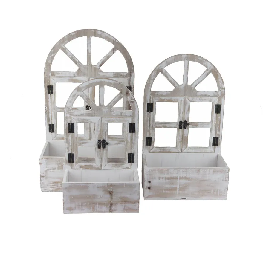Súprava drevených obalov na kvety s plastom. Sada obsahuje 3 obaly s tromi veľkosťami. Malý obal má rozmery: 22 x 10 cm, výšku 9 cm, celková výška 37 cm. Stredný obal má rozmery: 26 x 13 cm, výška 10 cm, celková výška 42 cm. Veľký obal má rozmery: 30 x 16 cm, výška 11 cm, celková výška 48 cm.