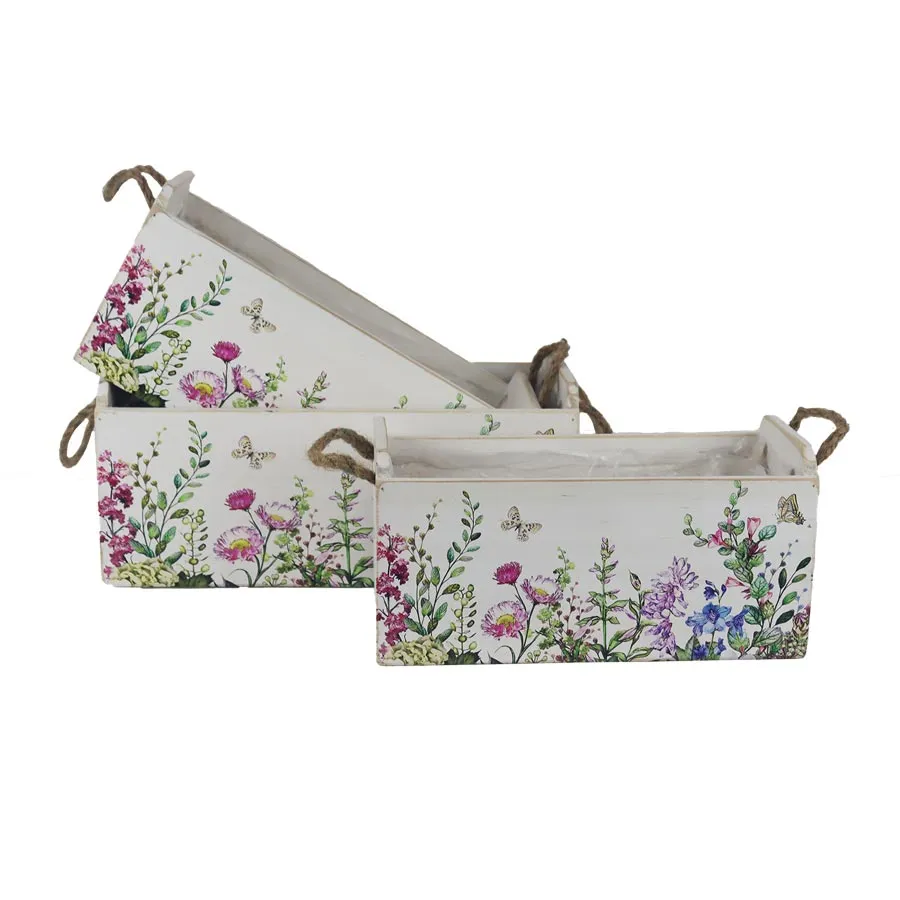 Súprava obalov s plastom na vysadenie. Sada obsahuje 3 obaly s tromi veľkosťami. Malý obal má rozmery: 25,5 x 11 cm, výšku 12 cm. Stredný obal má rozmery: 28,5 x 13,5 cm, výšku 12,5 cm. Veľký obal má rozmery: 31,5 x 16 cm, výšku 13 cm.