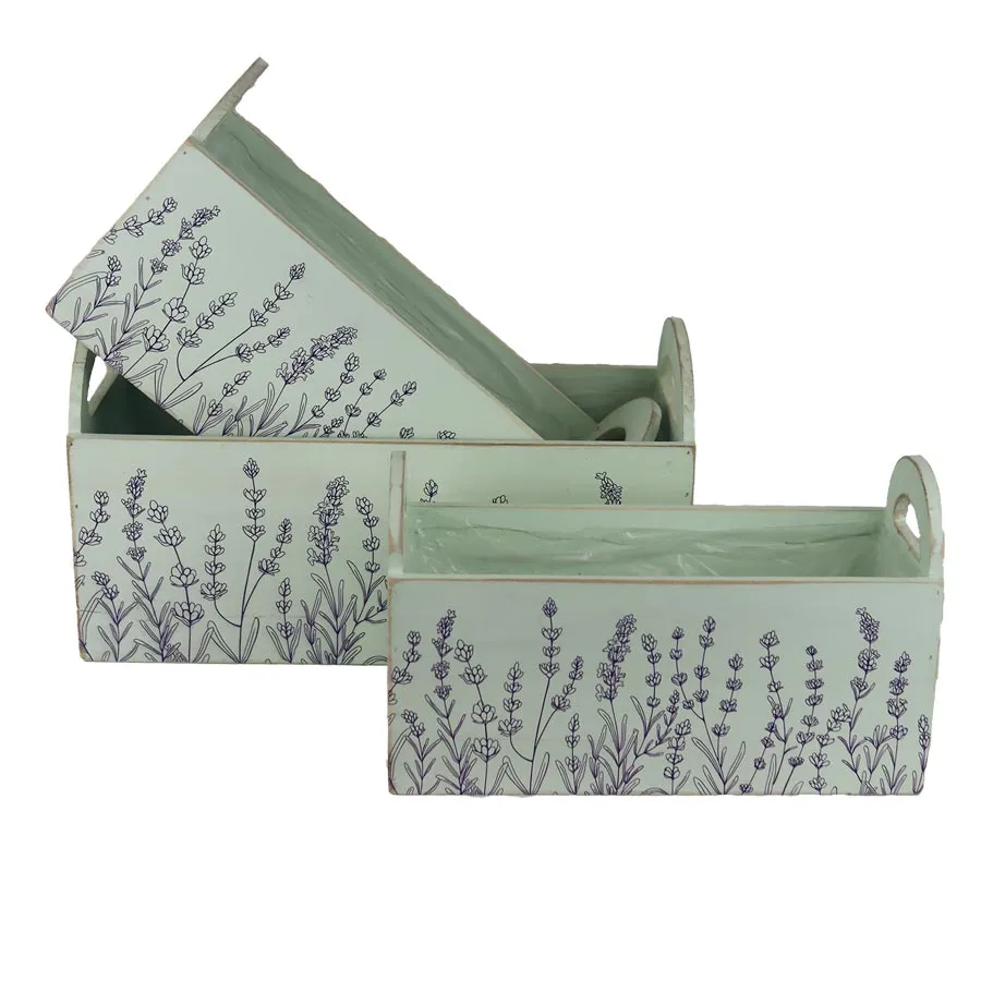 Súprava obalov s plastom na vysadenie. Sada obsahuje 3 obaly s tromi veľkosťami. Malý obal má rozmery: 28 x 11,5 cm, výšku 12 cm, celková výška 16,7 cm. Stredný obal má rozmery: 32 x 13,7 cm, výšku 13 cm, celková výška 18 cm. Veľký obal má rozmery: 36 x 16,5 cm, výšku 14 cm, celková výška 19,5 cm.
