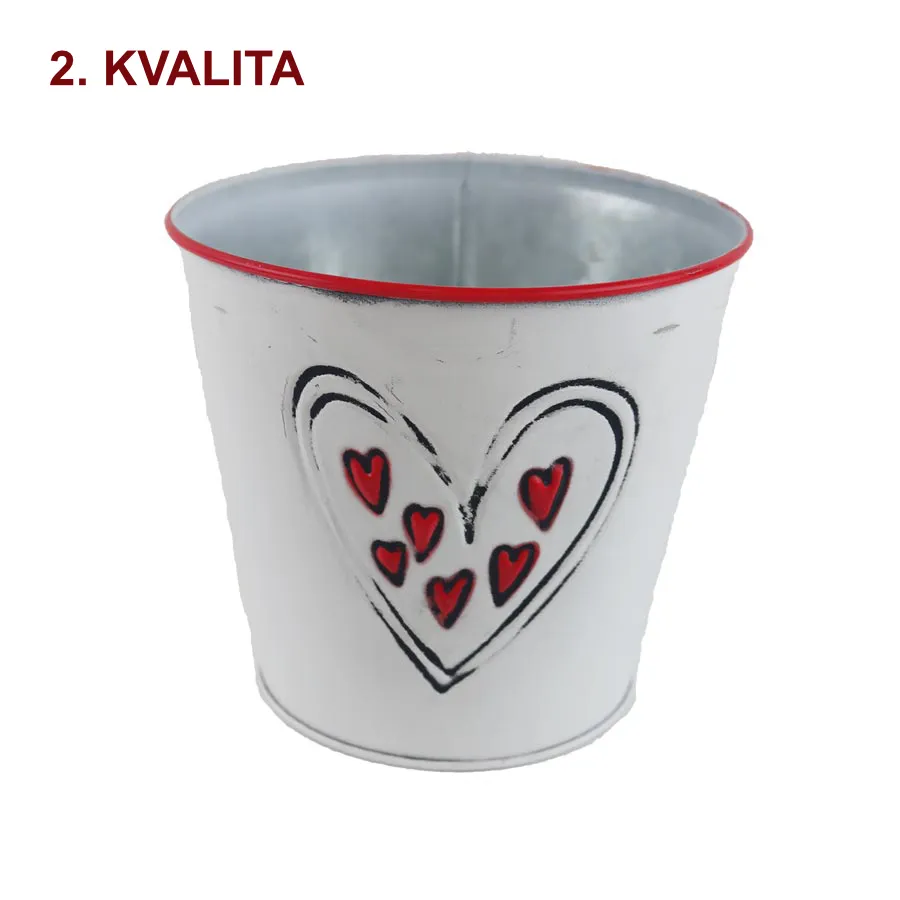 Kvetináč plechový so srdiečkami.