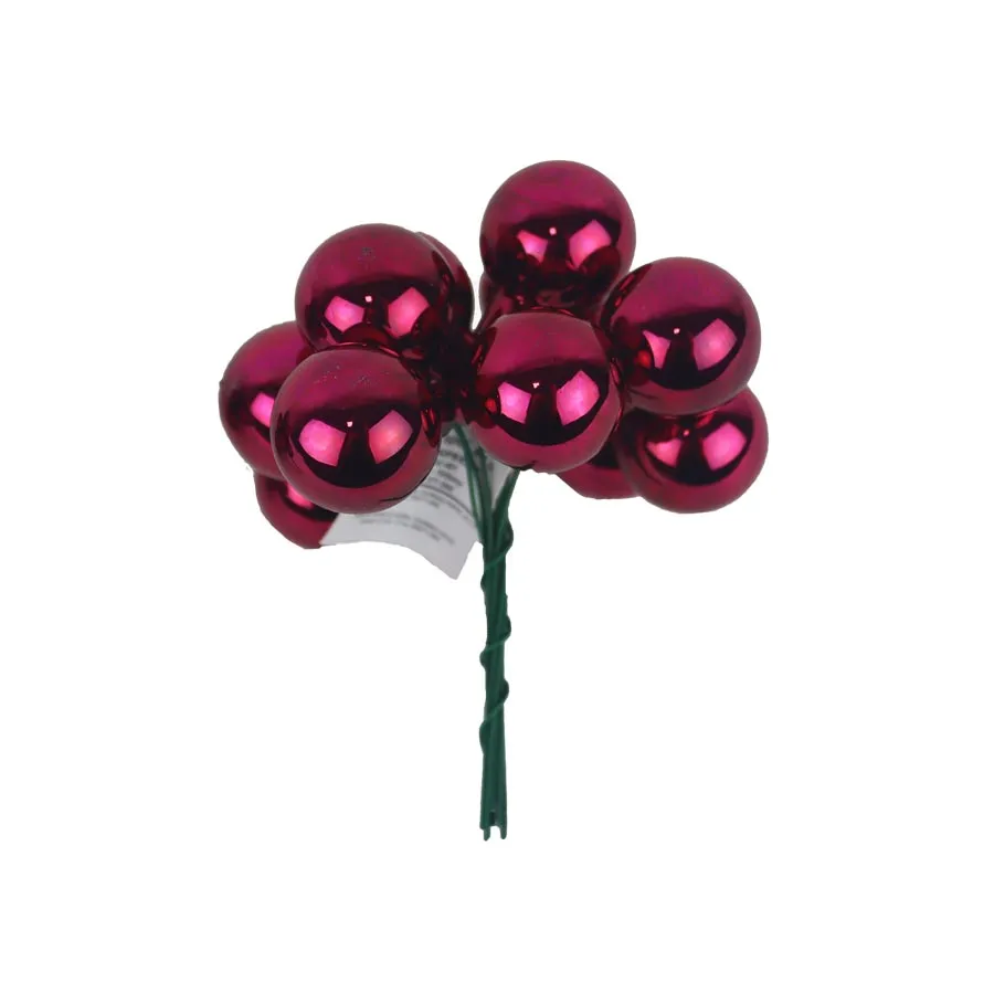 Sklenené banky na drôtiku, bordeaux lesklá, priemer 2,5 cm, 12 ks, S0571-09/L
