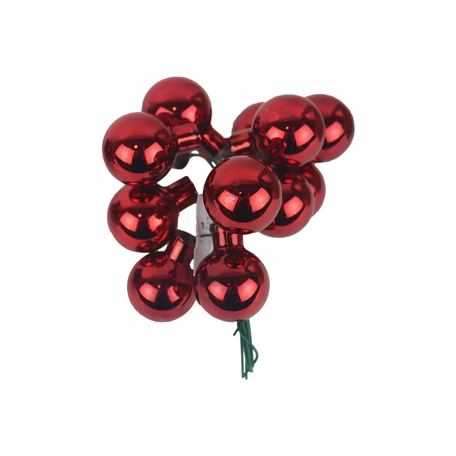 Sklenené banky na drôtiku, červená lesklá. Zväzok obsahuje 12 ks.