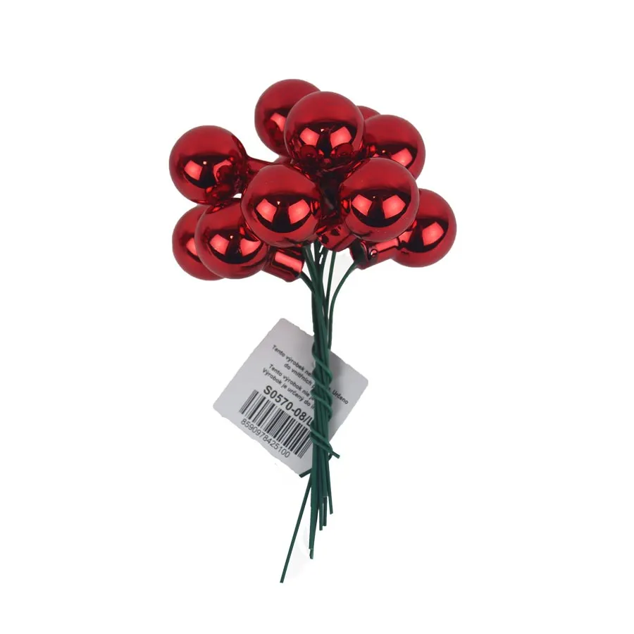Sklenené banky na drôtiku, červená lesklá, priemer. 2 cm, 12 ks, S0570-08/L