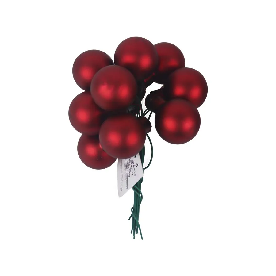 Sklenené banky na drôtiku, červená matná. Zväzok obsahuje 12 ks.