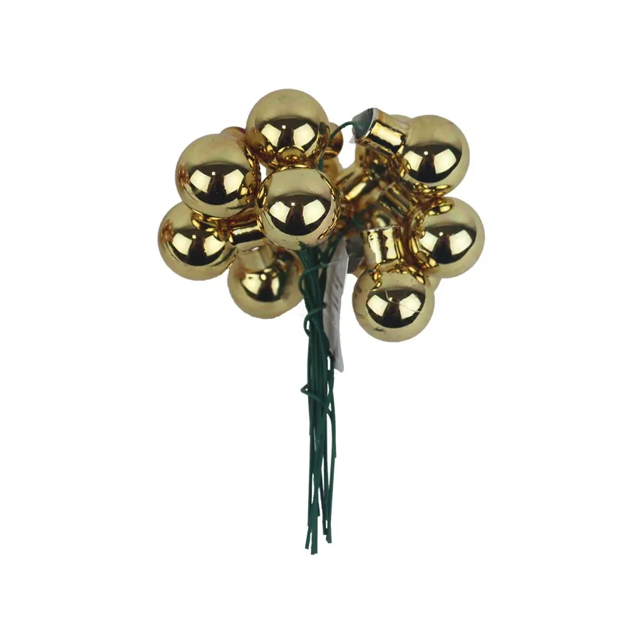 Sklenené banky na drôtiku, champagne lesklá. Zväzok obsahuje 12 ks.