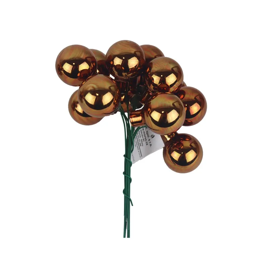 Sklenené banky na drôtiku, hnedá lesklá. Zväzok obsahuje 12 ks.