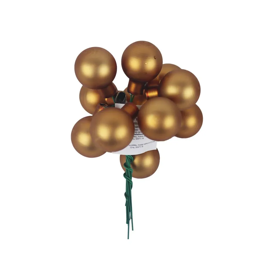 Sklenené banky na drôtiku, hnedá matná. Zväzok obsahuje 12 ks.