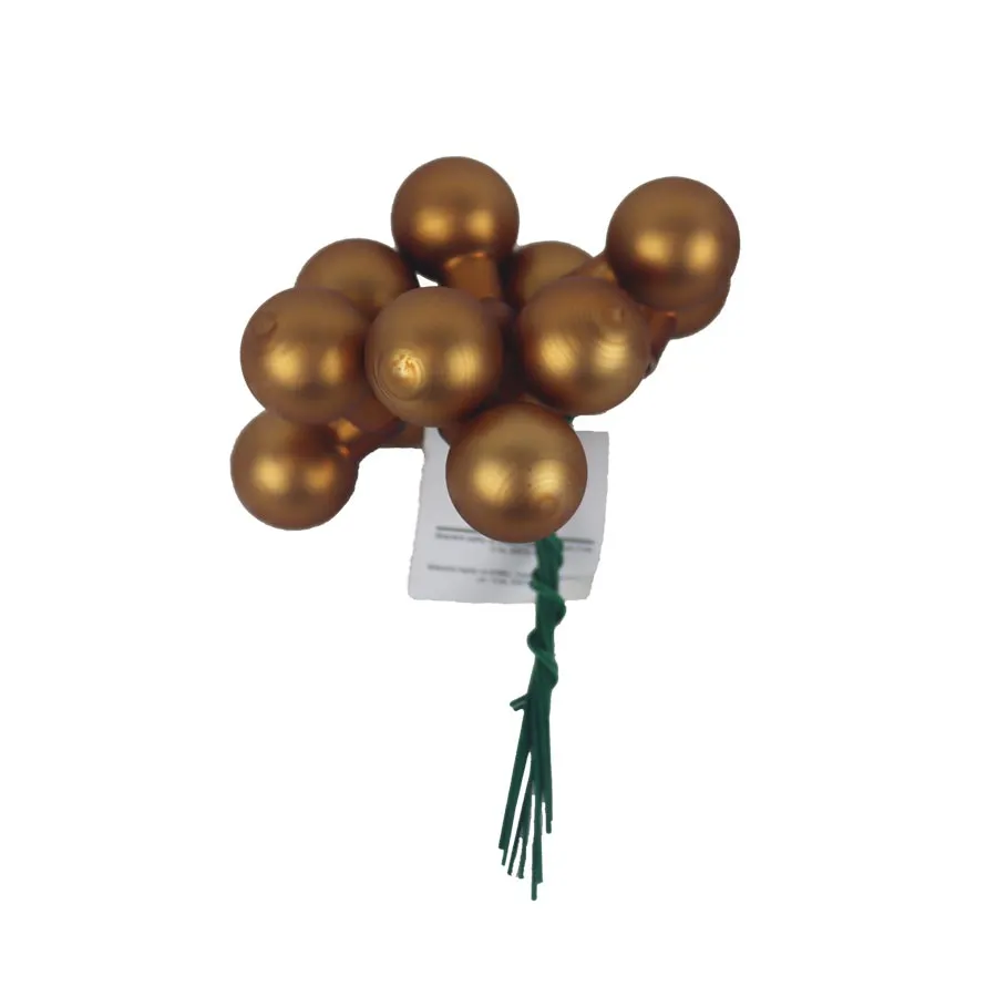 Sklenené banky na drôtiku, hnedá matná, priemer. 2 cm, 12 ks, S0570-18
