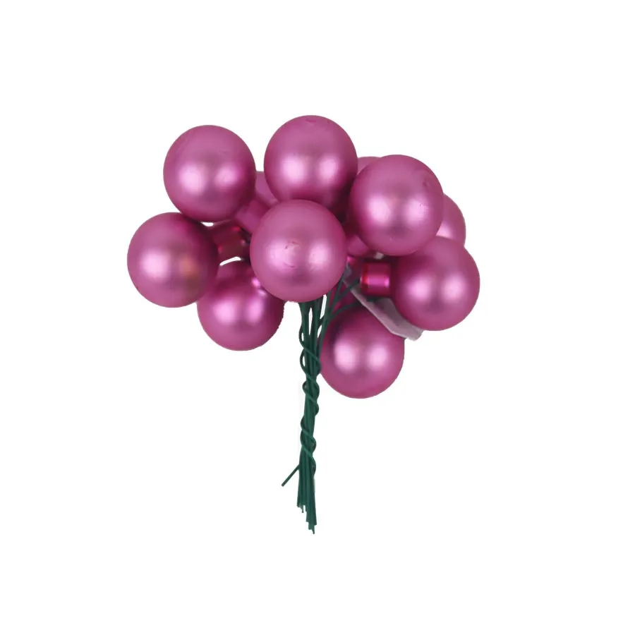 Sklenené banky na drôtiku, bordó lesklá, priemer. 2 cm, 12 ks, S0570-09/L