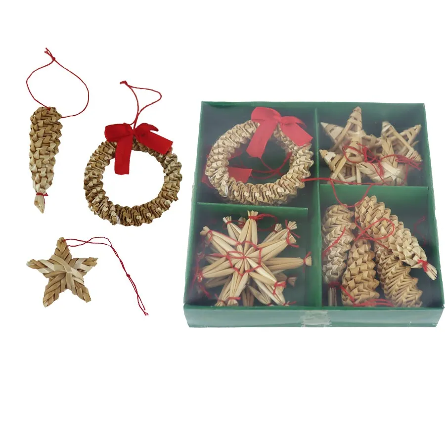 Sada slamených ozdôb na zavesenie. Sada obsahuje 14 ozdôb na zavesenie.