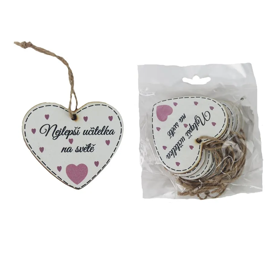 Srdce na zavesenie s nápisom Nejlepší učitelka na světě, 10 ks D7870
