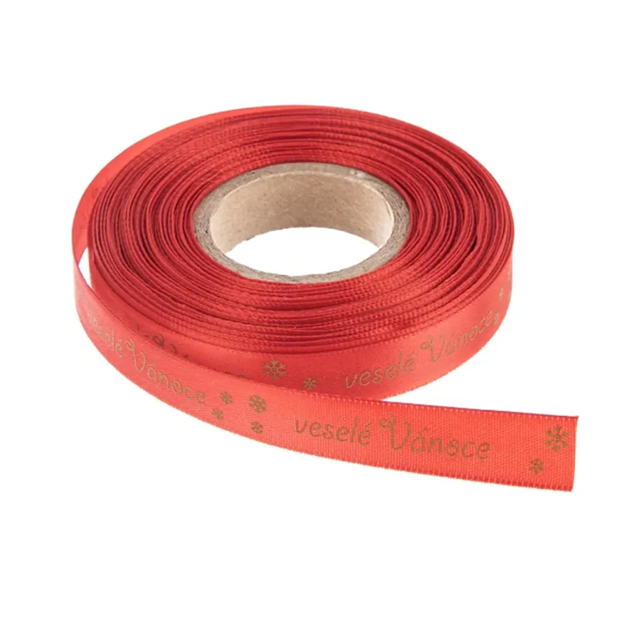 Červená polyesterová stuha s potlačou "veselé Vianoce" je ideálna na balenie vianočných darčekov alebo ozdobenie vianočných dekorácií.