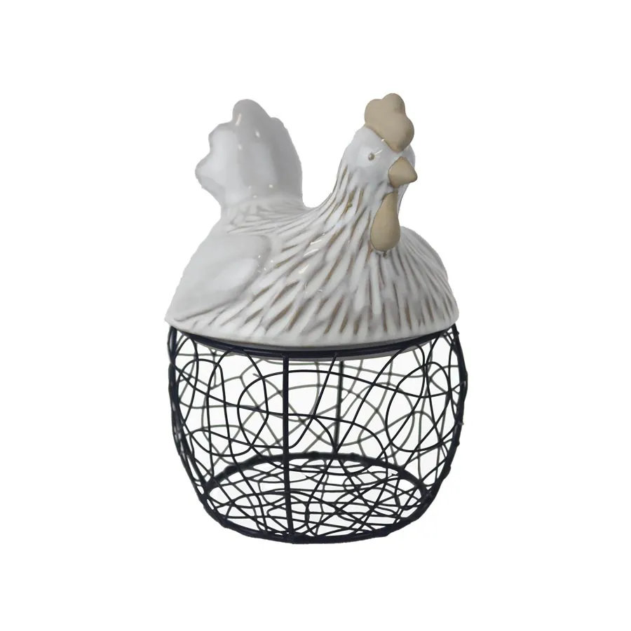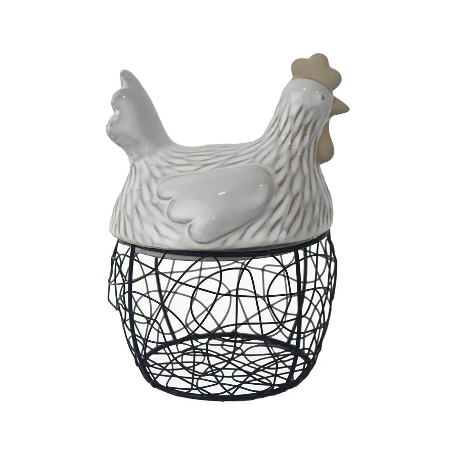 košík na vajíčka s keramickou sliepkou ako vekom - veľmi obľúbená dekorácia do kuchyne alebo na veľkonočné obdobie.