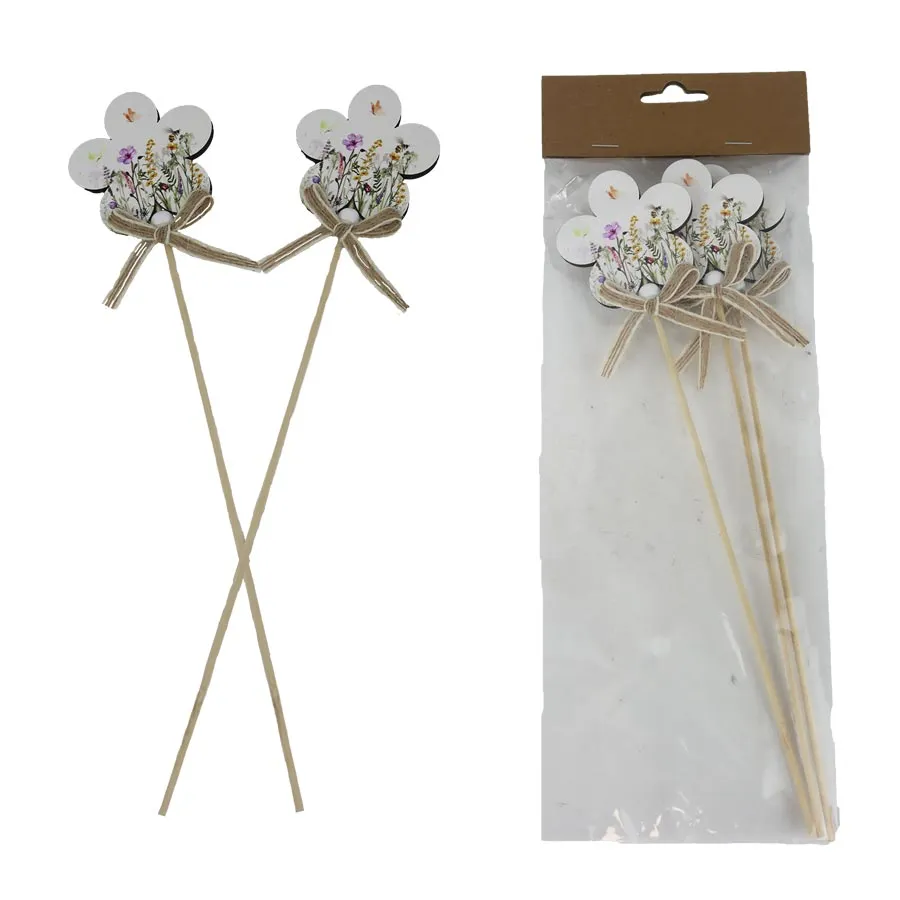 Sada dekoračných zápichov. Súprava obsahuje 3 zápichy. Zápich má rozmery: priemer 6 cm, hrúbku 0,5 cm, celková dĺžka zápichu 29 cm.