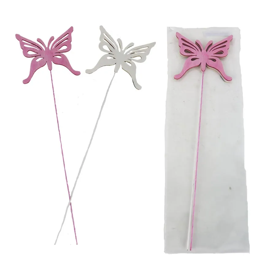 Sada zápichov motýľ. Súprava obsahuje 2 zápichy. Zápich má rozmery: 8 x 6,6 cm, hrúbku 0,2 cm, celková dĺžka zápichu 27 cm.