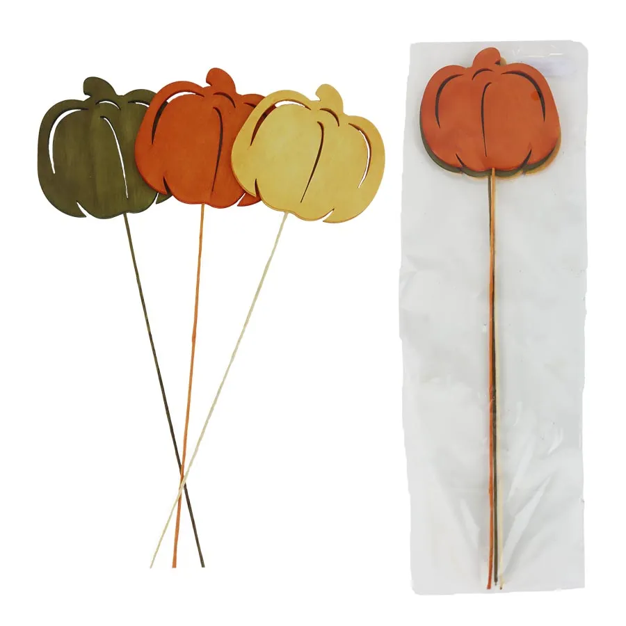 Sada dekoračných zápichov tekvice. Súprava obsahuje 3 zápichy. Zápich má rozmery: 8 x 0,3 cm, výšku 7,8 cm, celková dĺžka zápichu 31 cm.