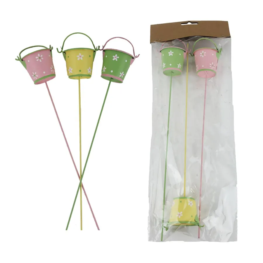 Sada dekoračných zápichov vedierko. Súprava obsahuje 3 zápichy. Zápich má rozmery: 6 x 4,5 cm, výšku 4,5 cm, celková dĺžka zápichu 30,5 cm.